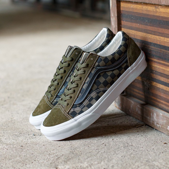 Olive green checkered store vans